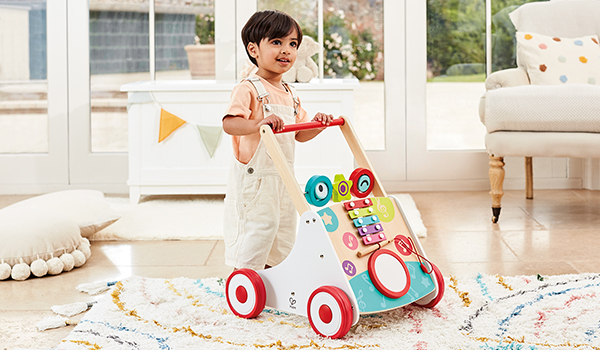 Kleinkinder werden zu begeisterten Entdeckern, die alles erkunden wollen, sobald sie laufen und zeigen können. Durch Verbesserung der Hand-Auge-Koordination können sie Objekte sicherer greifen und halten.