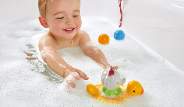 Das Planschen im Wasser führt zu neuen und aufregenden Sinneseindrücken. Mit Badespielzeug, das mit Wasser interagiert, können neue taktile Erfahrungen entstehen und die Badezeit zu einem Vergnügen machen.