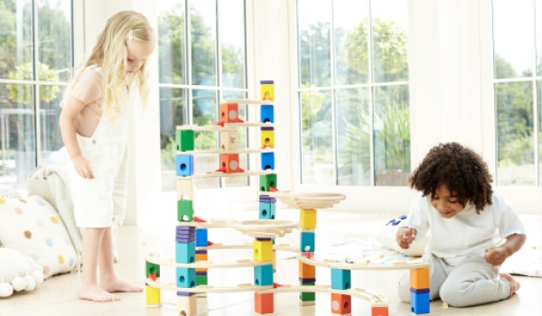 Murmelbahnen zu bauen macht Spaß und ist spannend. Sie fördern aber auch wichtige Fähigkeiten wie die Entwicklung von Strategien zur Problemlösung und die Hand-Auge-Koordination, die den Kleinen beim Heranwachsen gute Dienste leisten.
